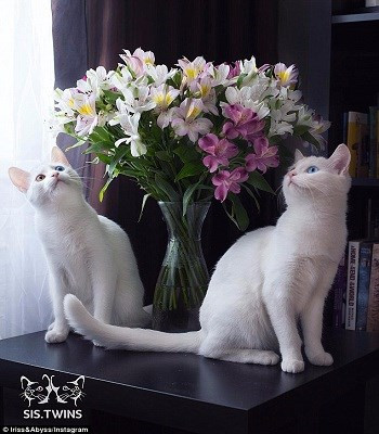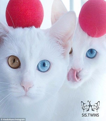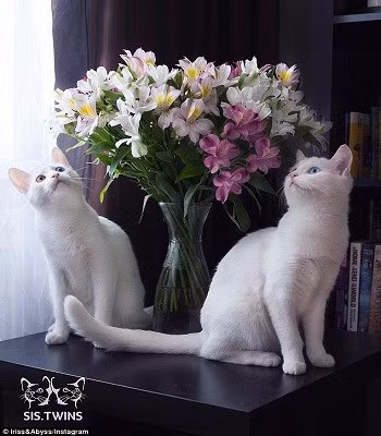 Cặp mèo song sinh tên Iriss và Abyss ở Saint Petersburg, Nga, sở hữu đôi mắt hai màu tuyệt đẹp thu hút hàng chục nghìn lượt theo dõi trên mạng xã hội Instagram.