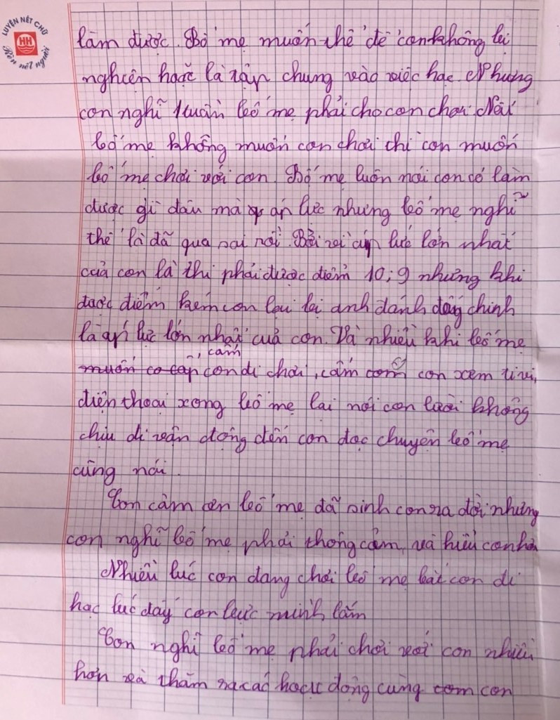 "Lá thư" đáng yêu nhưng cũng gửi gắm nhiều thông điệp từ cậu học sinh ở Hà Nội này có lẽ cũng là sự cảnh báo cho các bậc phụ huynh khi gây áp lực cho con bằng việc theo đuổi kỳ vọng của chính bản thân mình.