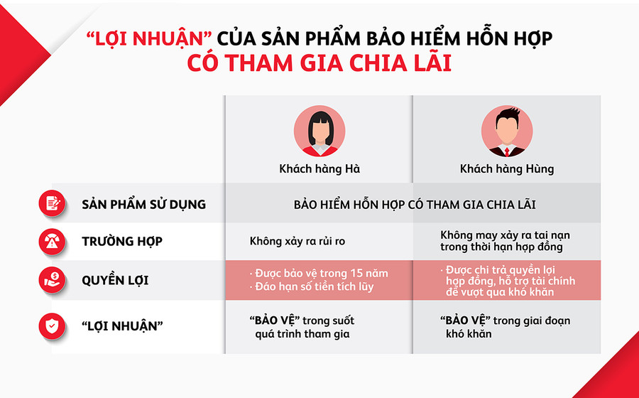Riêng dòng sản phẩm liên kết đầu tư sẽ bao hàm cả 2 yếu tố: bảo vệ và đầu tư sinh lợi nhuận. Điều này đồng nghĩa chỉ với một sản phẩm bảo hiểm, người tham gia sẽ vừa được bảo vệ tài chính trước các rủi ro, vừa có cơ hội gia tăng tài sản tích lũy qua hoạt động đầu tư tại các quỹ liên kết.