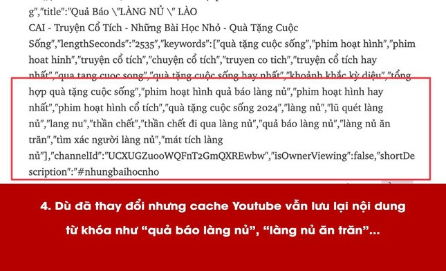 | Bằng chứng kênh YouTube Những Bài Học Nhỏ câu view phản cảm về Làng Nủ, đồng thời lấp liếm xóa bằng chứng đã được ghi lại. Ảnh: Viên Hồng Quang. |