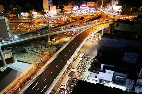 Nhánh cầu Nguyễn Kiệm - Hoàng Minh Giám uốn lượn nhìn từ chân vòng xoay Nguyễn Thái Sơn