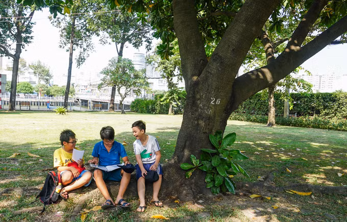 Sau 16 năm được trồng, cây sống tốt với bộ trễ trồi ra ngoài cùng nhiều nhánh nhỏ dưới thân, phía trên lá xanh tốt, tạo bóng mát cho người dân đi dạo công viên ven kênh.