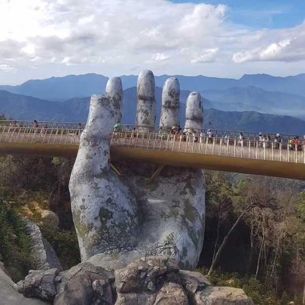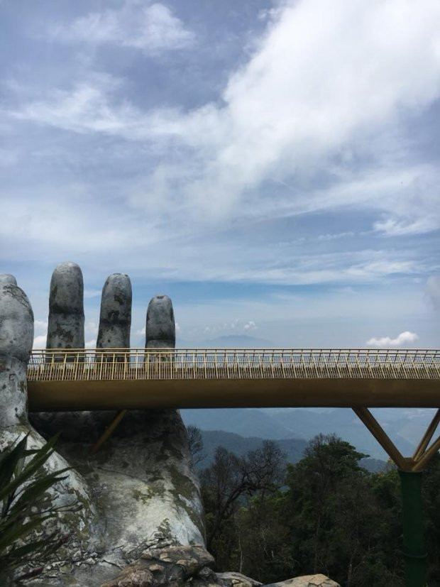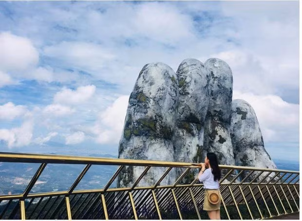 Mới đây, dân Đà Nẵng lại vừa có thêm một địa điểm chụp ảnh ”sống ảo” hoành tráng và tuyệt đẹp không thua gì các địa danh nổi tiếng ở nước ngoài. Đó là cây câu vàng có bàn tay khổng lồ ở Bà Nà Hills.