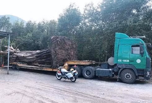 Trước đó, Đại úy Phan Bảo Trung - Đội trưởng Đội tuần tra kiểm soát số 1 Phòng CSGT Công an tỉnh Thừa Thiên - Huế thông tin: Vào khoảng 19h30 ngày 8/1, đơn vị đang làm nhiệm vụ trên QL1A đoạn qua xã Lộc Điền (huyện Phú Lộc, tỉnh Thừa Thiên - Huế) thì phát hiện xe ô tô đầu kéo mang BKS: 43C - 190.38 kéo theo rơ moóc 43R - 021.27 chở một cây “khủng” có dấu hiệu vi phạm nên ra hiệu lệnh dừng xe kiểm tra.