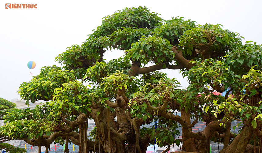 Cây sanh này cao khoảng 1.5m, đường kính bệ hơn 2m, thân tán xòe rộng và đối xứng đẹp mắt.