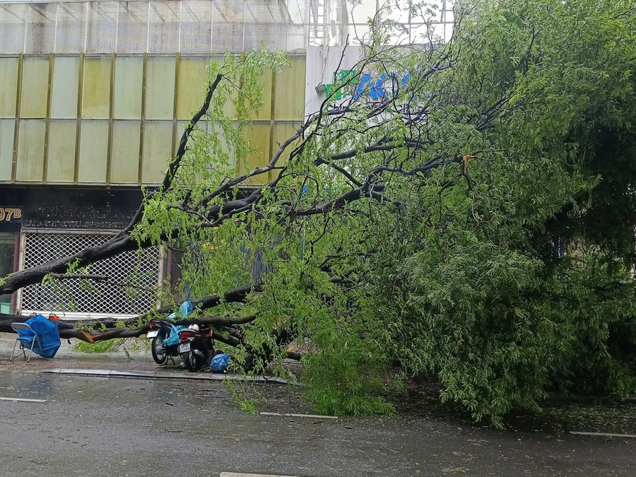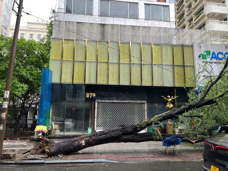 Trước đó, khoảng 13 giờ 30 cùng ngày, trong cơn mưa lớn, cây me đường kính khoảng 50cm phía trước một phòng khám xương khớp gần giao lộ Nguyễn Du - Huyền Trân Công Chúa - Thủ Khoa Huân (phường Bến Thành, quận 1, TPHCM) bất ngờ bật gốc ngã đè nhiều xe máy đậu trên vỉa hè. May mắn vụ việc không có thương vong về người.