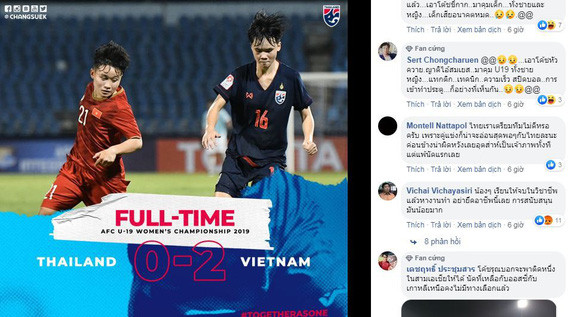 Các CĐV Thái Lan tiếp tục "khóc như mưa" và than vãn "chúng ta đang quá run sợ Việt Nam" sau khi U19 Thái Lan thất bại 0-2 trước Việt Nam trên sân nhà ở trận ra quân bảng A Giải U19 nữ vô địch châu Á 2019.