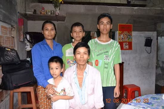Gia đình anh Đỗ Văn Điều, SN 1968, chị Phan Thị Lộc, SN 1975 (ảnh) (trú tổ 5, KV 7, phường Nhơn Phú, TP Quy Nhơn) có 5 người thì 4 người trong số đó bị bệnh tật, ốm đau. Trong đó, nhiều năm nay anh Điều mắc chứng bệnh tâm thần phân liệt, thường xuyên đau đầu, trầm cảm nên không làm lụng được mà chỉ quanh quẩn ở nhà. Con trai lớn là cháu Đỗ Văn Lợi (SN 1996) bị lõm lồng ngực bẩm sinh; con trai giữa là Đỗ Văn Chung (SN 2000) bị sứt môi, hở hàm ếch và con trai út là cháu Đỗ Văn Hương (SN 2006) bị suy dinh dưỡng nặng.