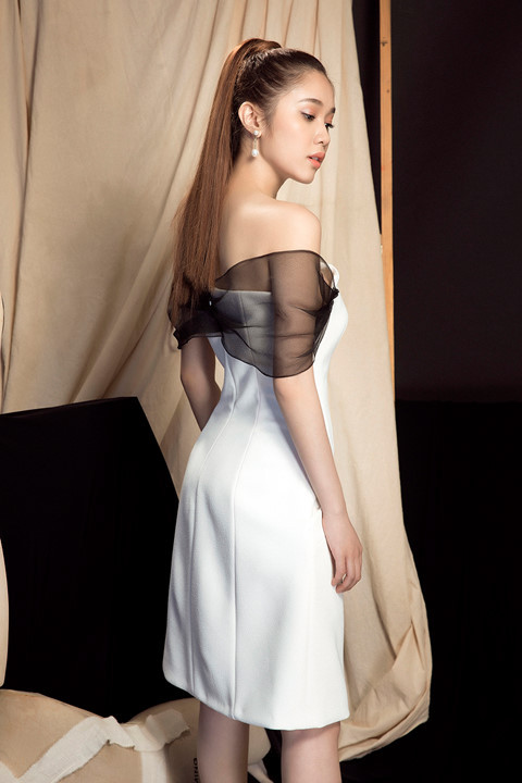 Gương mặt xinh đẹp, nụ cười khả ái vốn đã là thế mạnh giúp chân dài 9X tạo được thiện cảm với người nhìn. Tận dụng thế mạnh về đôi chân dài cùng làn da trắng, Quỳnh Hương khéo léo lựa chọn những thiết kế váy ngắn với màu sắc đối lập trắng đen.