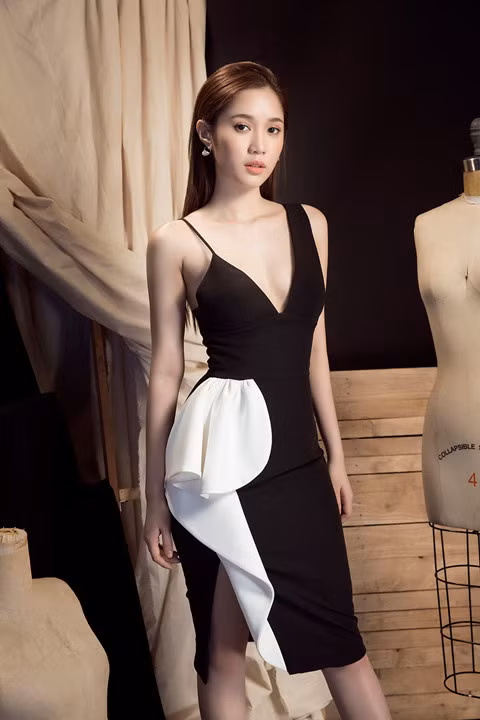 | Không lựa chọn những họa tiết cầu kỳ, Quỳnh Hương tận dụng những đường cắt tôn lên vẻ quyến rũ |