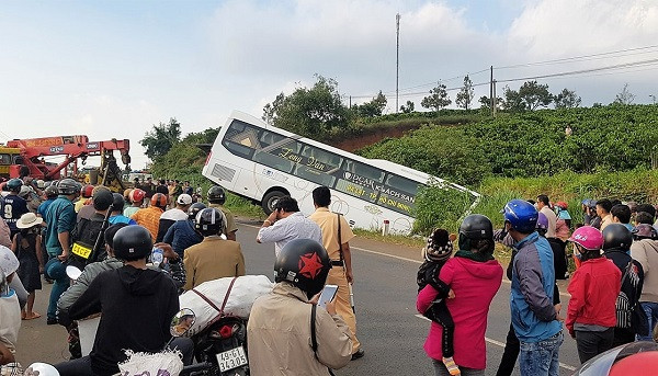 Cùng lúc này, xe khách giường nằm 47D - 025.47 do tài xế Trương Thanh Dân (47 tuổi, ngụ tại tỉnh Tây Ninh) điều khiển đang lưu thông theo hướng từ thành phố Đà Lạt đi TP Hồ Chí Minh. Trong lúc đổ dốc vào cua, tài xế xe khách phát hiện xe ô tô con 49A - 249.55 đang dừng giữa đường và bên ngoài có nhiều người bao vây. Tài xế buộc phải đánh lái qua bên trái và lao thẳng xuống khe bên đường. Rất may, xe khách chỉ có 2 người và may mắn thoát nạn.