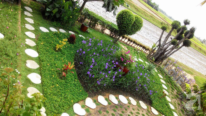 Những bậc bước đi trong vườn được tạo hình trái tim bắt mắt.