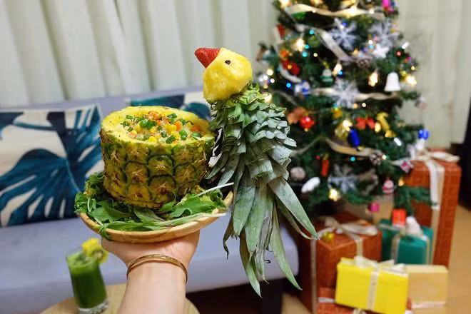 | Cơm chiên quả dứa trang trí hình con vẹt |