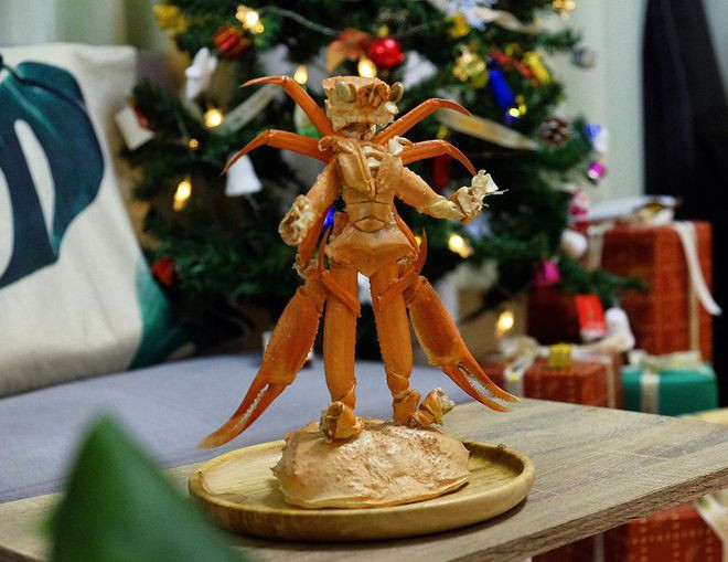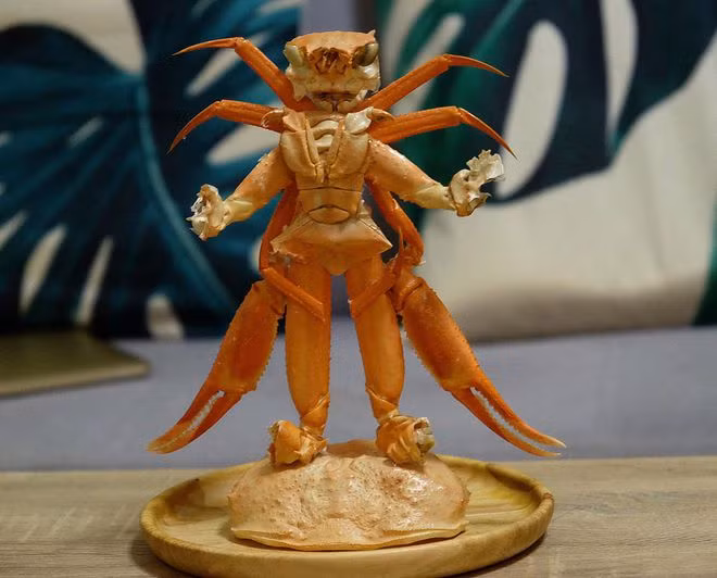 Từ việc yêu thích các bộ phim siêu nhân và tình yêu dành cho ẩm thực, anh Lê Đức Nhân đã 'hô biến' con cua tuyết thành mô hình siêu nhân vô cùng đẹp mắt.