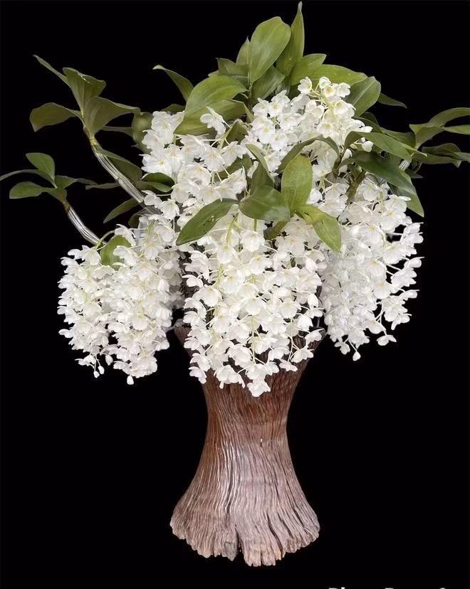 Anh Nghi cho biết để có một chậu hoa thành phẩm đủ điều kiện xuất ra thị trường anh phải dày công chăm sóc từ 2 - 3 năm. Đó là chưa kể đến những giò lan có giá trị cao, anh phải chăm chút từ 5 - 6 năm để cây đạt độ lớn với đường kính từ 1-1,5m, cao 2m, có hoa nở đều, dày và có phải màu sắc tươi tắn, rực rỡ.