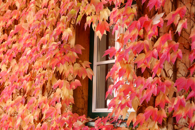 Khung cửa sổ lấp đầy lá đỏ khiến chàng trai Việt ngẩn ngơ. "Chuyến đi trở lại quả thật tuyệt vời hơn những gì mình mong chờ", anh nhớ lại.