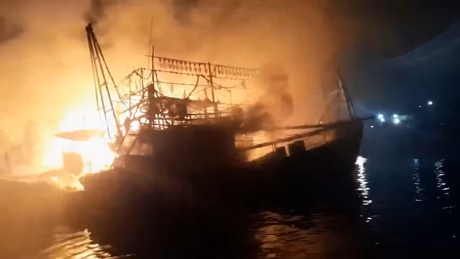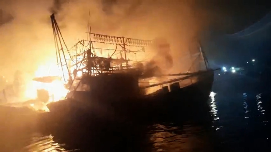 Vì tàu cá bốc cháy đang neo đậu cách xa bờ nên người dân địa phương khi phát hiện sự cố không thể tiếp cận dập lửa, liền gọi điện báo lực lượng chức năng.