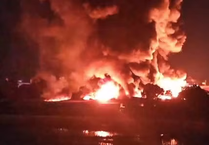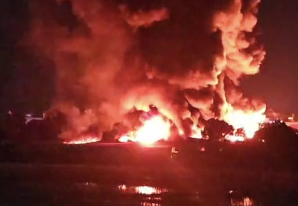 Tại hiện trường, ngọn lửa lửa kèm theo cột khói đen đặc quánh bốc cao hàng trăm mét bao trùm công ty sản xuất bao bì. Nhiều người ở vị trí cách xa đám cháy khoảng 40 km cũng nhìn thấy cột khói đen cuồn cuộn bốc cao.