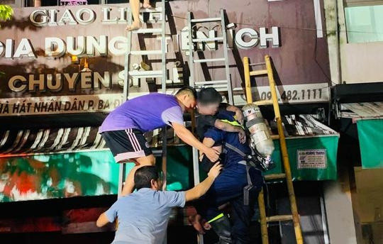 Tại hiện trường ngôi nhà dân 3 tầng, 1 tum có 5 người bị nạn mắc kẹt, trong đó có 3 người mắc kẹt tại phòng ngủ thuộc tầng 2 và 2 người bị nạn mắc kẹt trên hành lang tầng tum.