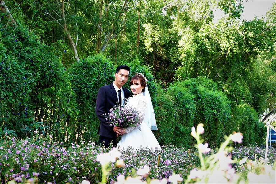 | Du khách tạo dáng trong vườn thạch thảo ở miền Tây mà không cần đi... Đà Lạt Ảnh: LUÂN TRẦN |