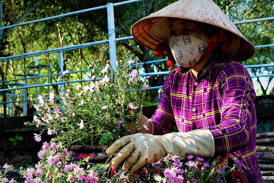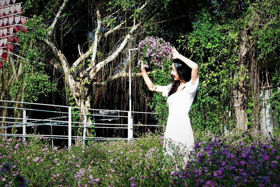 | Giữa mỗi luống hoa chị Trang khéo léo tạo lối đi để du khách tiện tham quan và chụp ảnh |