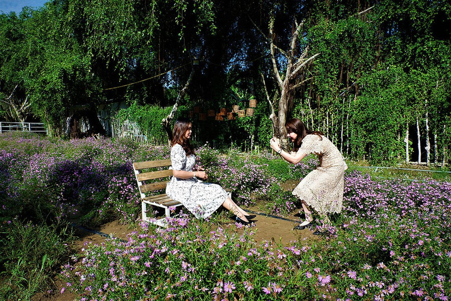 Với ý tưởng đó, chị mua hạt giống hoa và đem về trồng, đồng thời xây dựng thêm các tiểu cảnh như ghế, xích đu, cây cầu, tổ chim… với tổng chi phí gần 200 triệu đồng. Sau 4 tháng chăm sóc, vào khoảng cuối tháng 1 vừa qua chị bắt đầu mở cửa đón khách tham quan với giá vé 30.000 đồng/người.