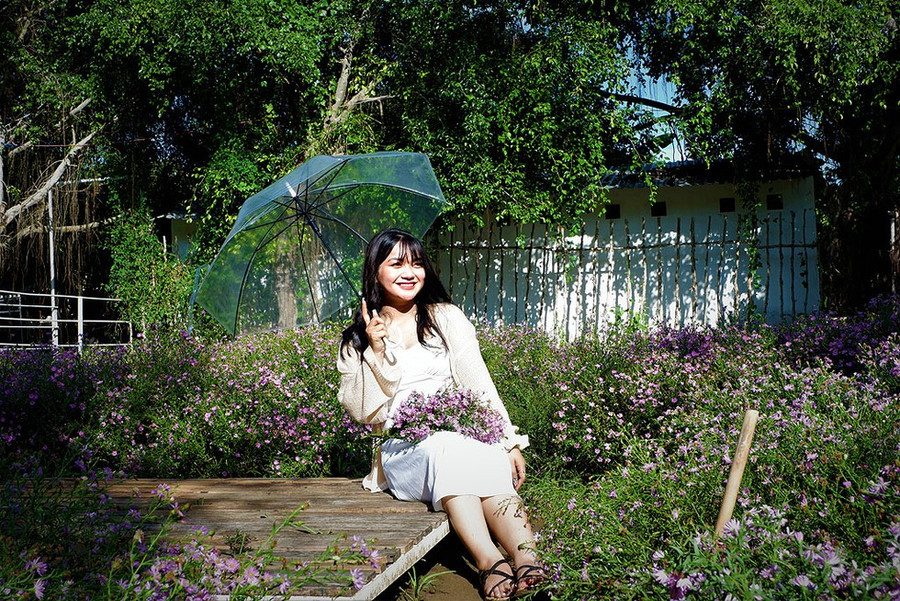 Cánh đồng hoa thạch thảo rộng 700m2 ở miền Tây (TP.Cần Thơ), với hàng ngàn gốc hoa thạch thảo tím dịu dàng làm say lòng du khách tới đây thỏa sức “sống ảo”.