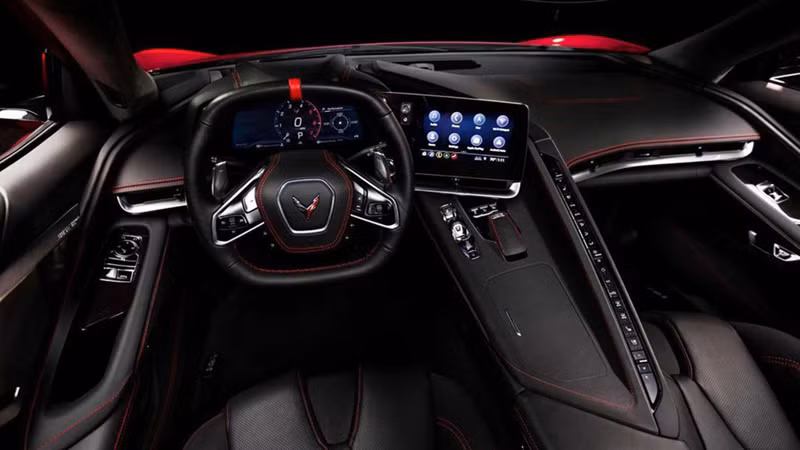 Corvette C8 bị hạn chế góc nhìn từ kính sau do cách bố trí động cơ cũng như cánh gió, vì thế, dữ liệu đến từ camera phía sau cũng sẽ giúp người lái giảm thiểu điểm mù phía sau cũng như dễ quan sát hơn.