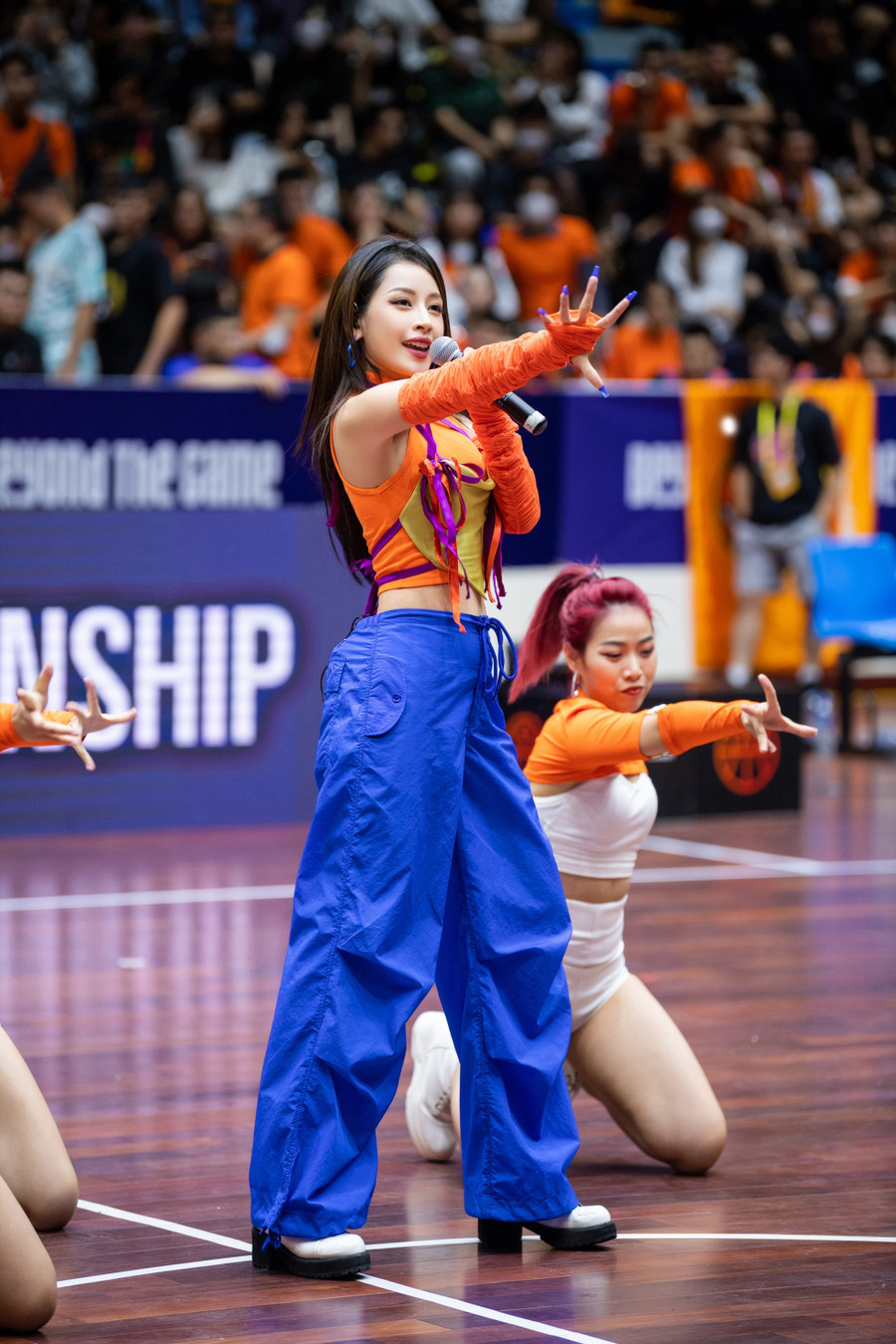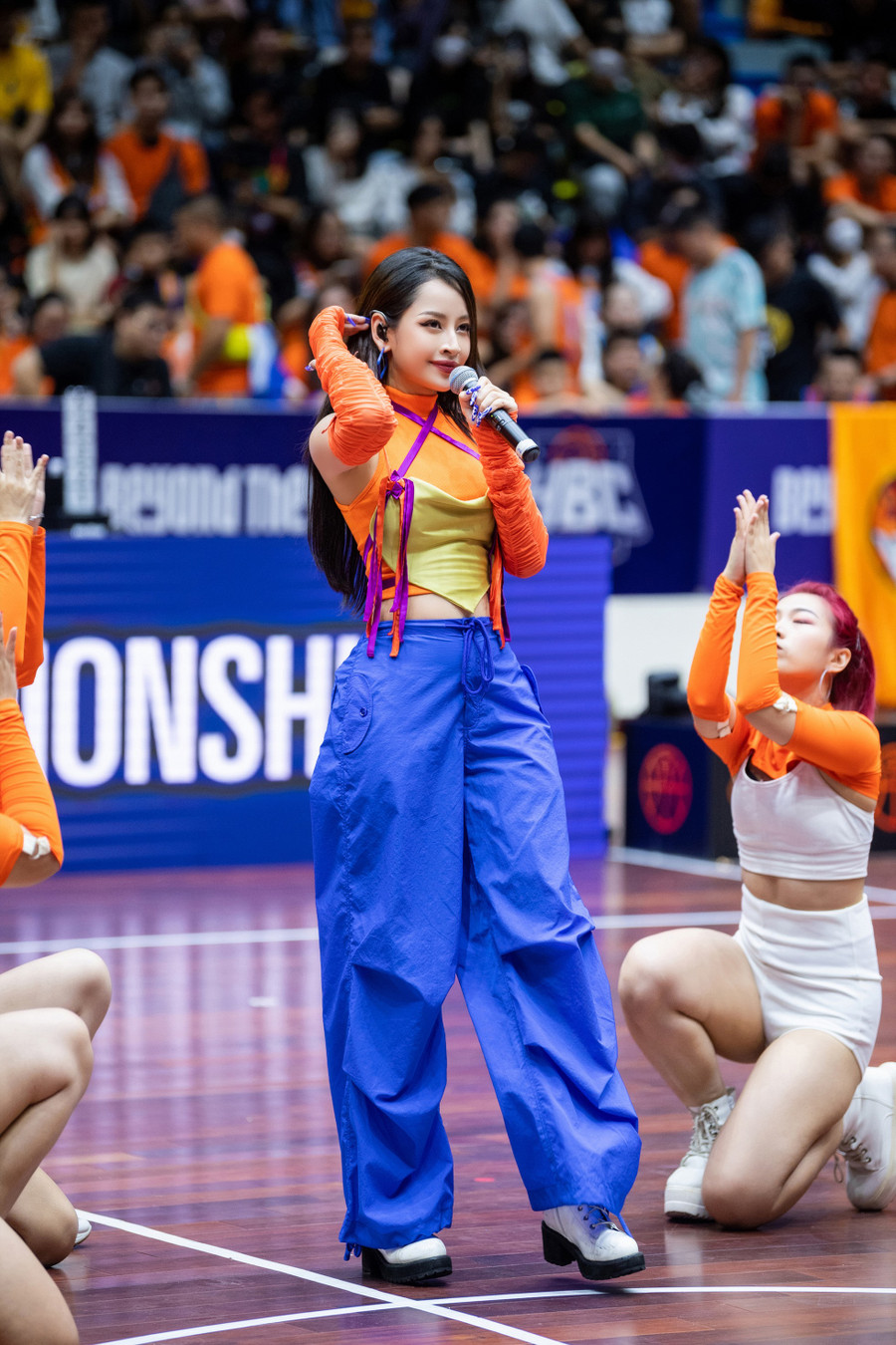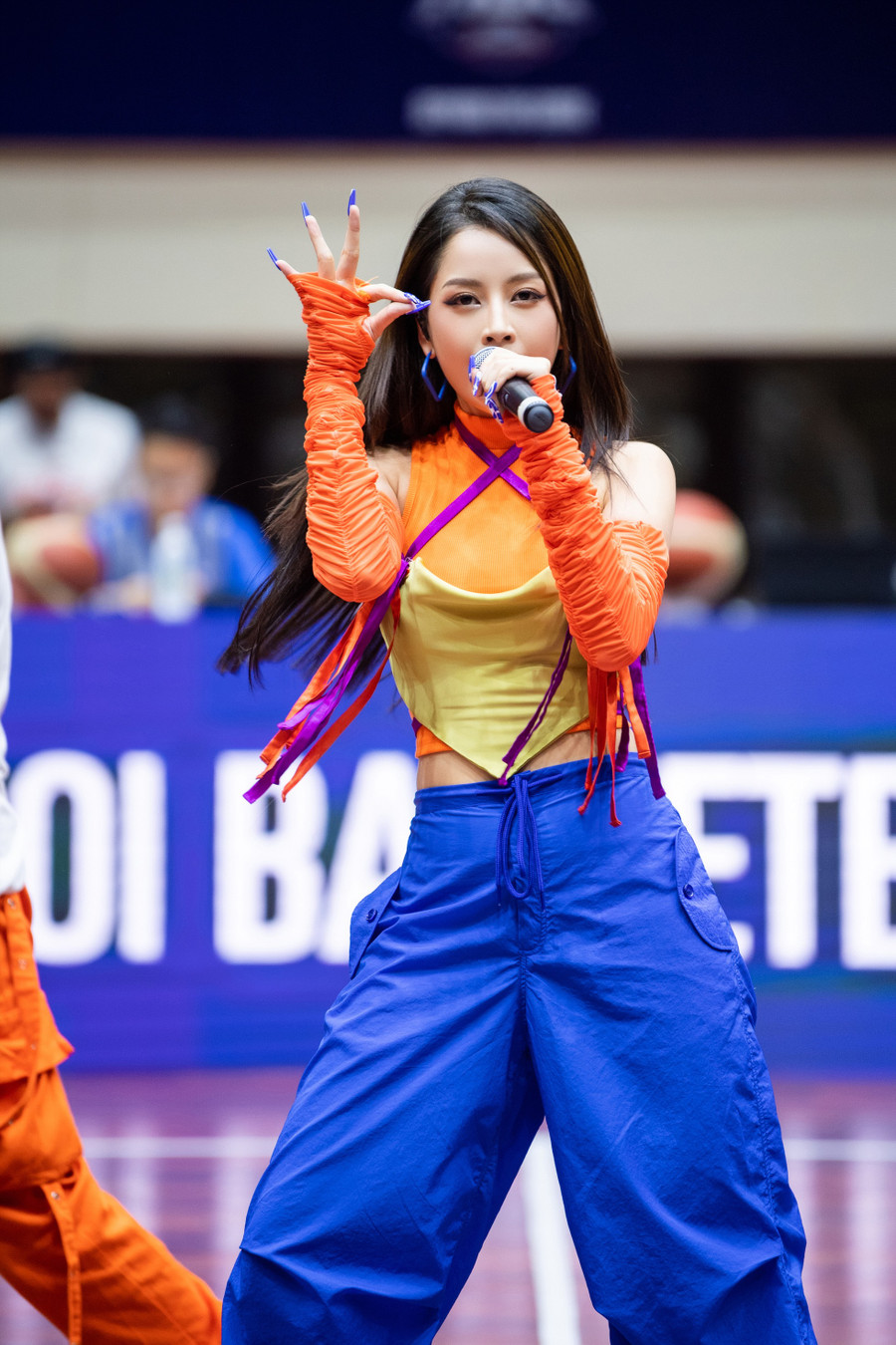 | Chi Pu biểu diễn tại Chung kết giải bóng rổ vô địch Hà Nội. Ảnh: NSCC |