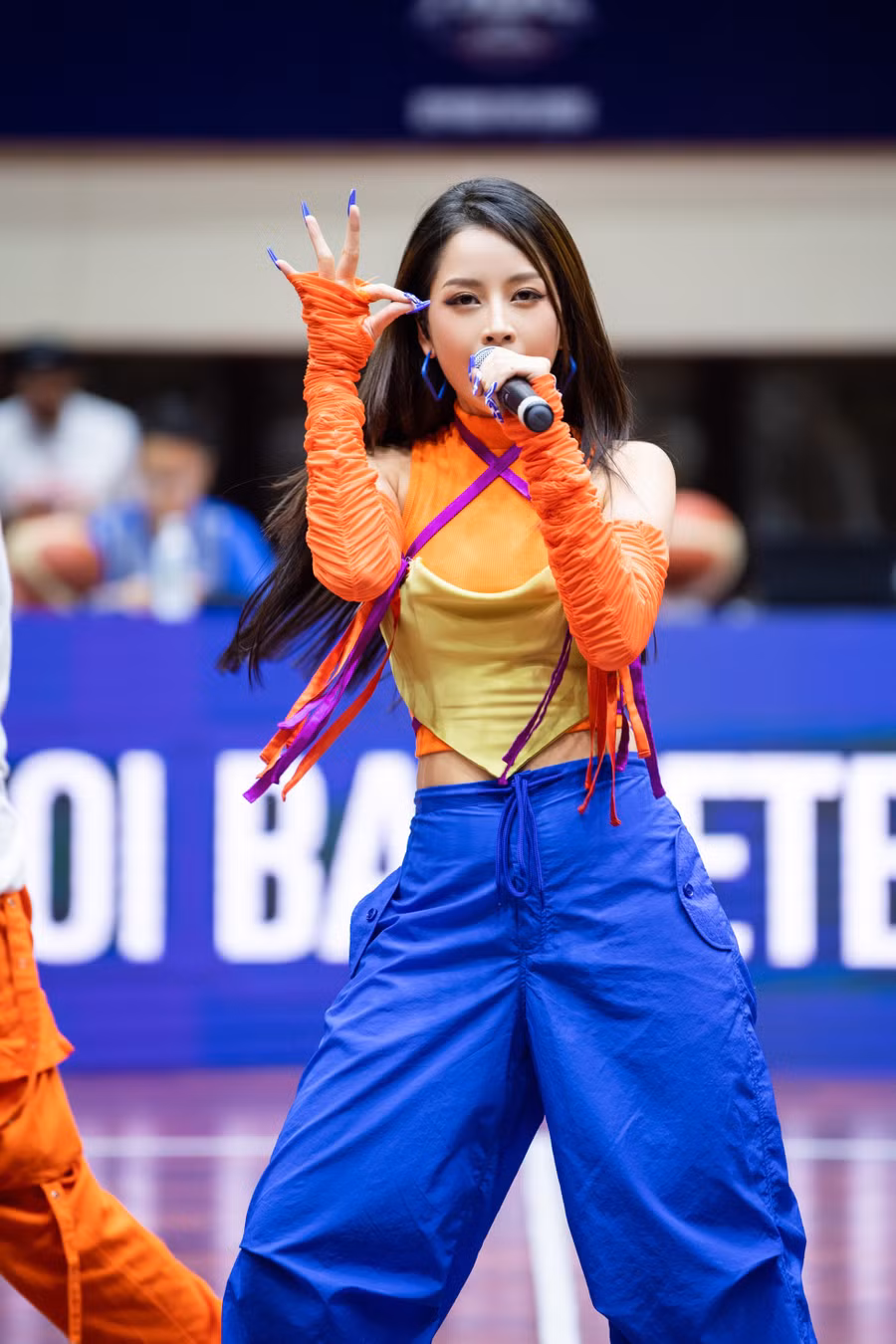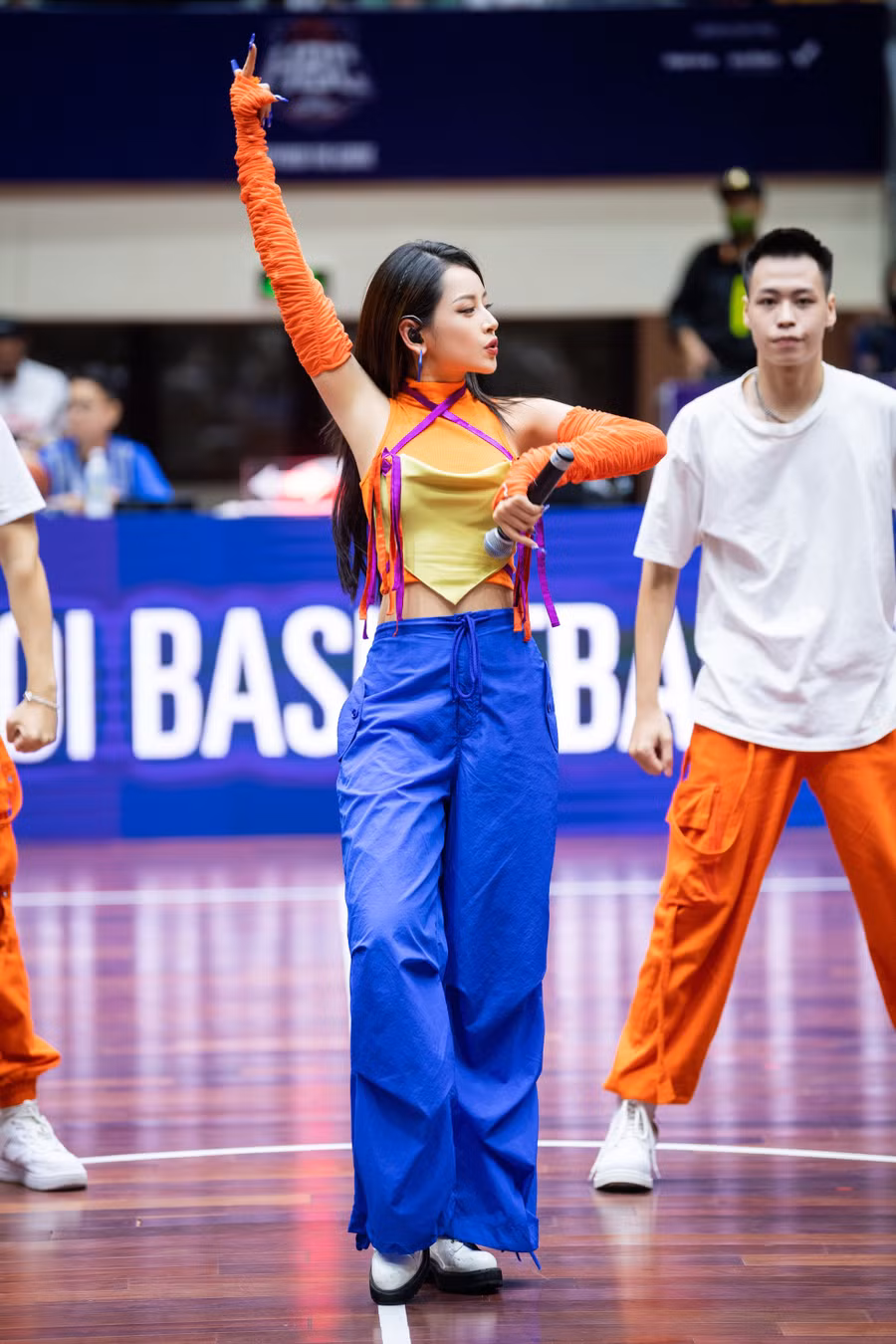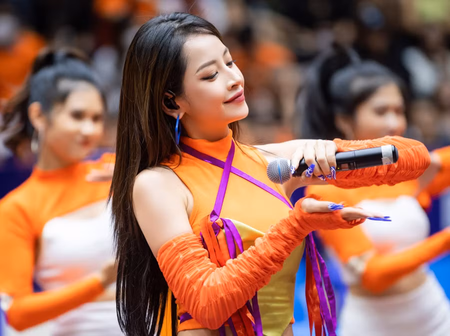 | Chi Pu biểu diễn tại Chung kết giải bóng rổ vô địch Hà Nội. Ảnh: NSCC |