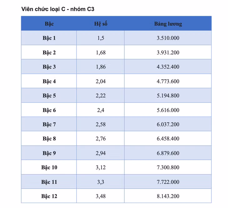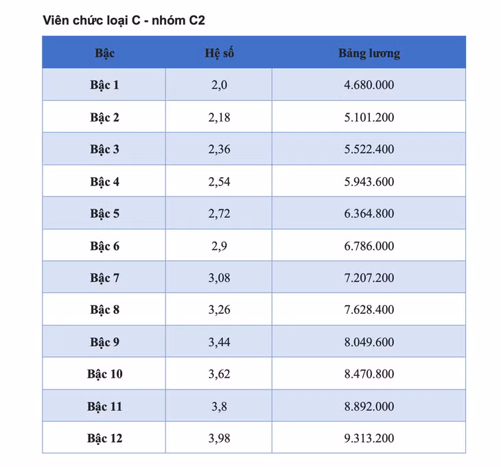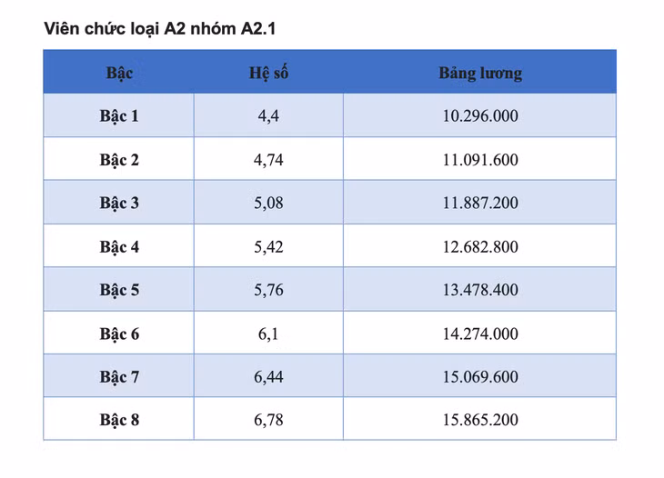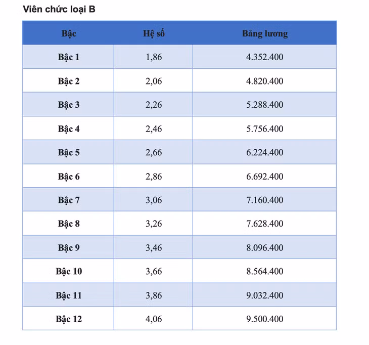 Dự kiến bảng lương viên chức 2025