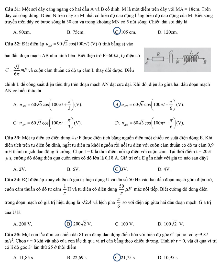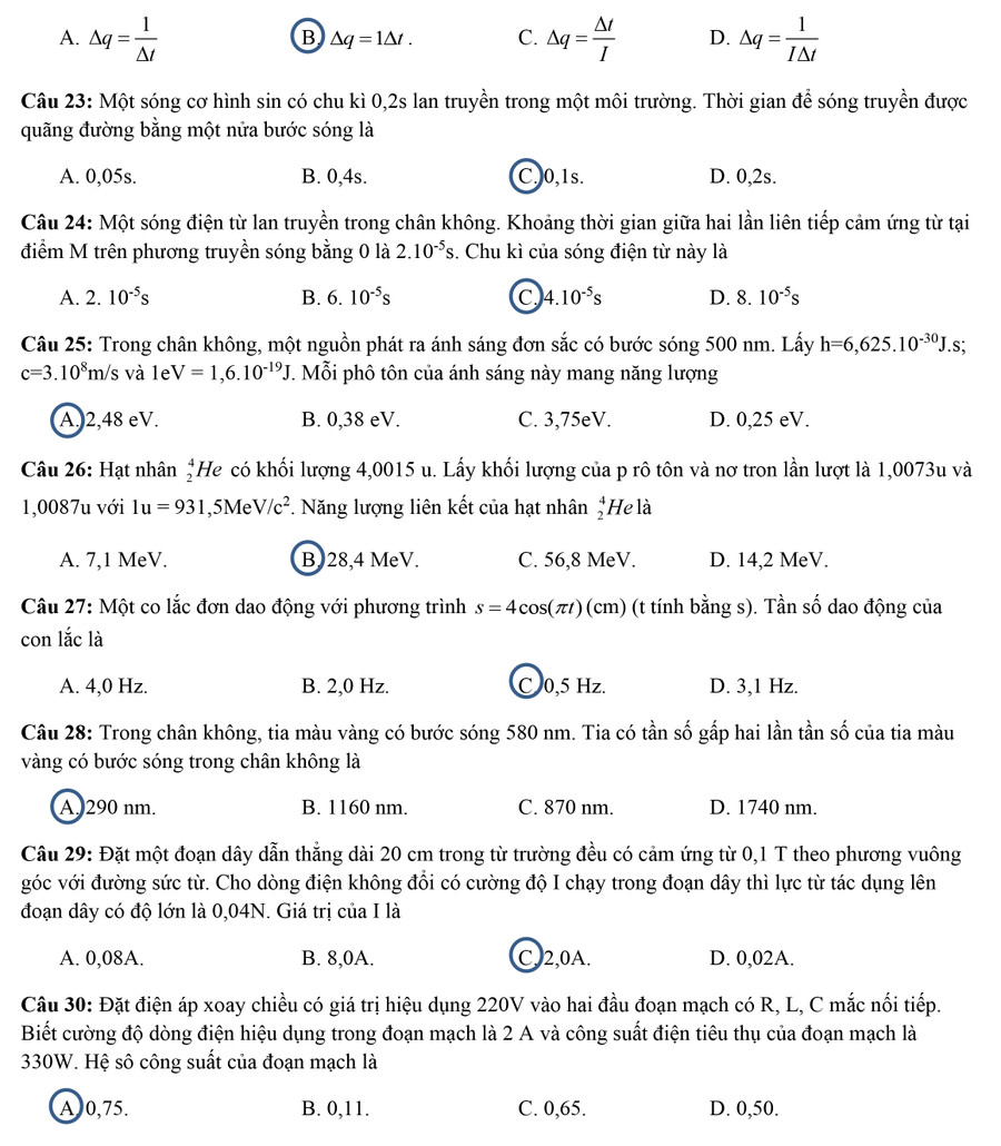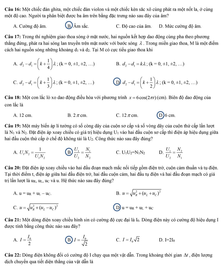 Đề thi, đáp án môn Vật lý
