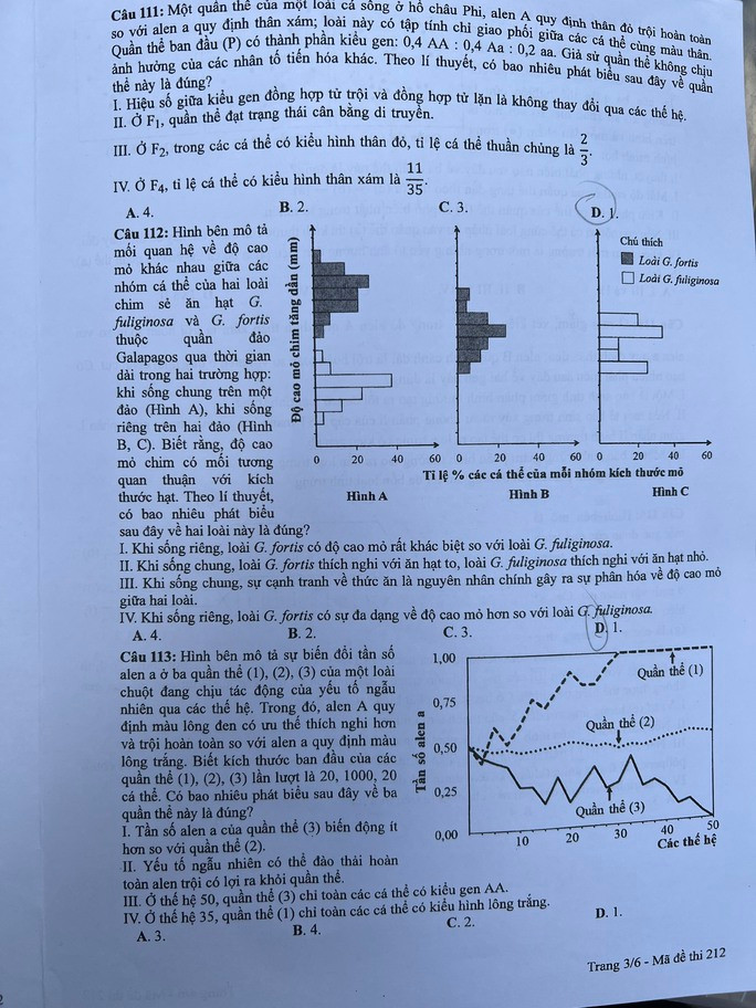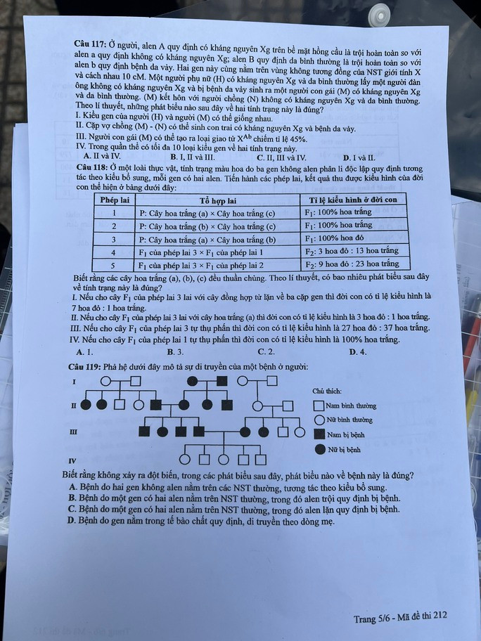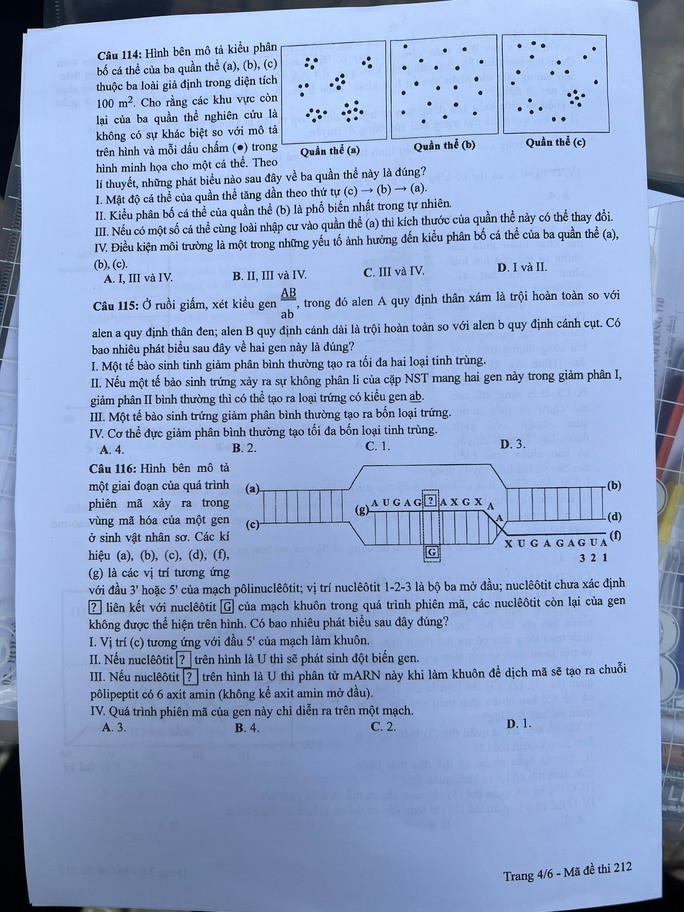 Đề thi môn Sinh học: