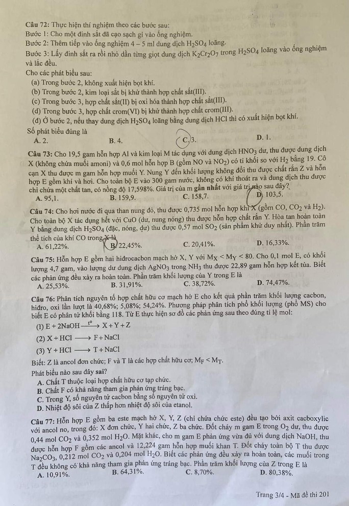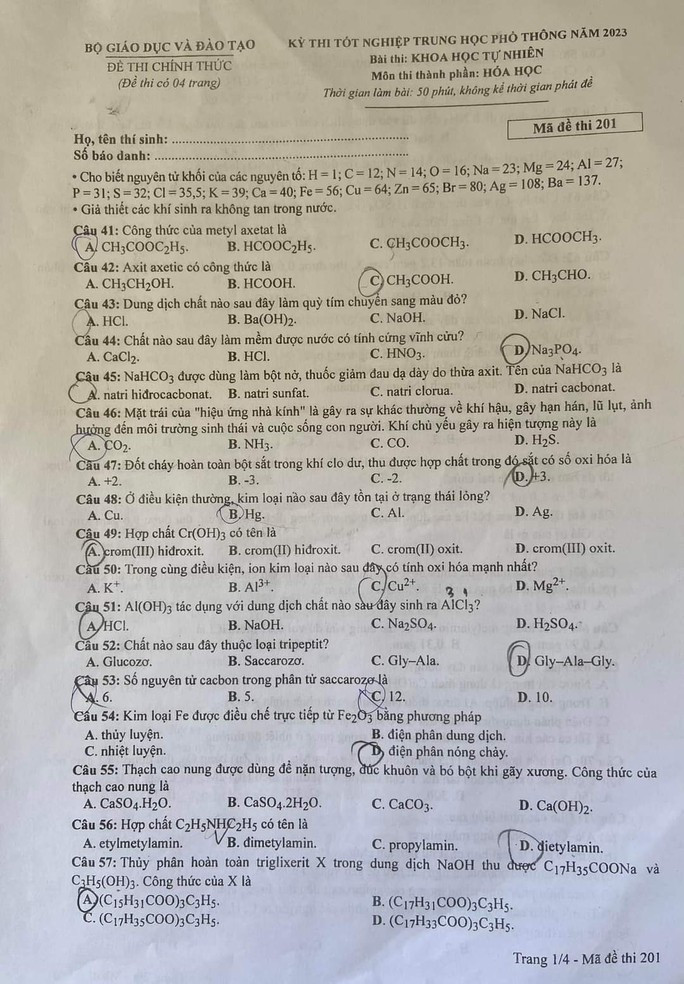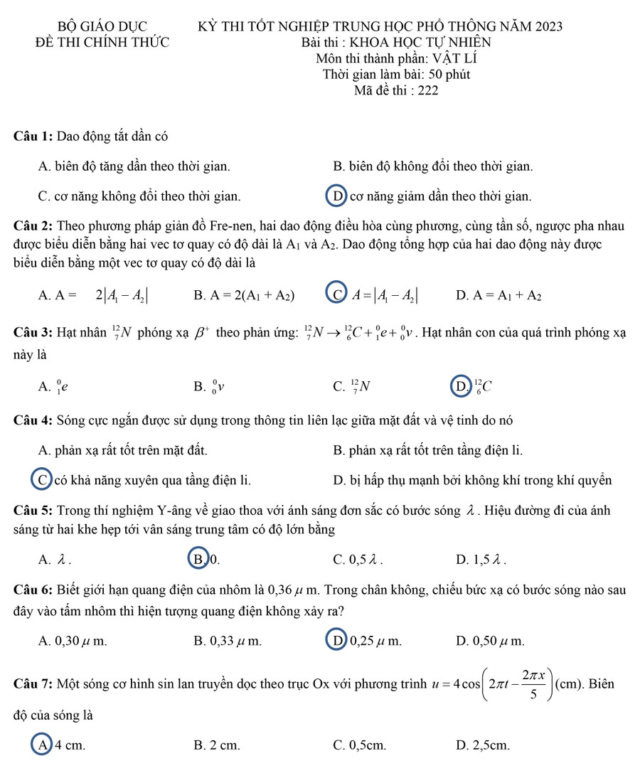 (GLO) - Mời phụ huynh, thí sinh xem chi tiết đề thi, đáp án các môn thi thuộc bài thi khoa học tự nhiên, gồm: vật lý, hóa học, sinh học