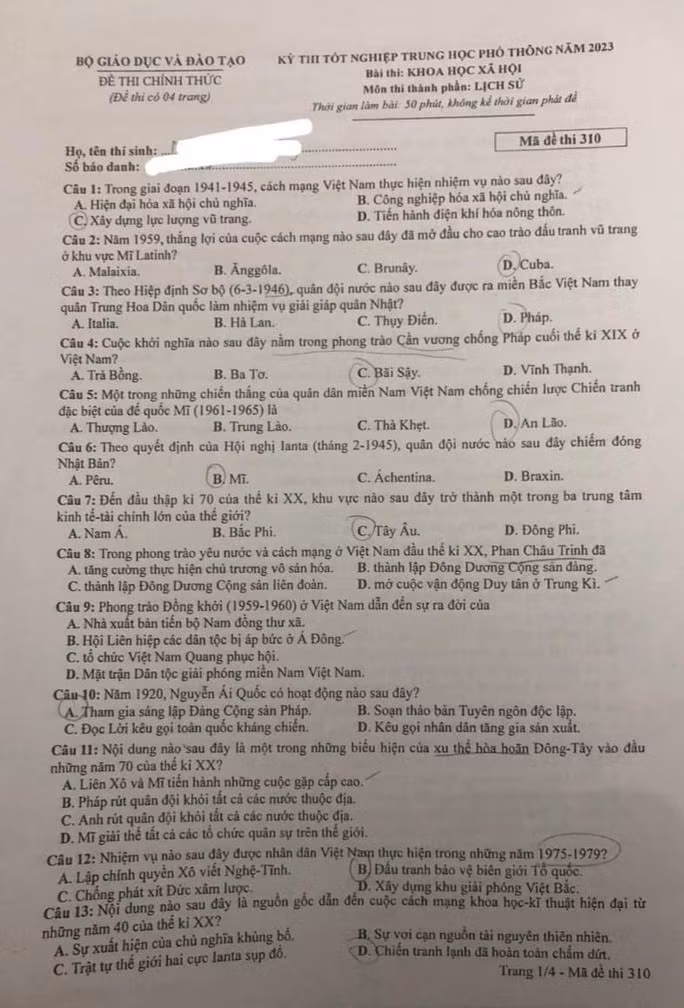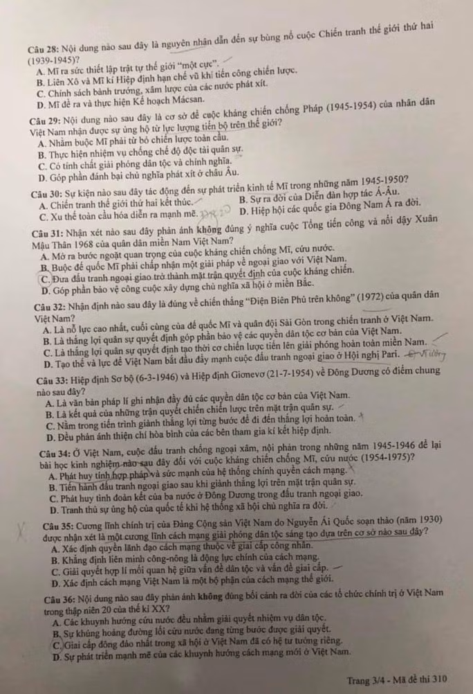 Đề thi môn Lịch sử: