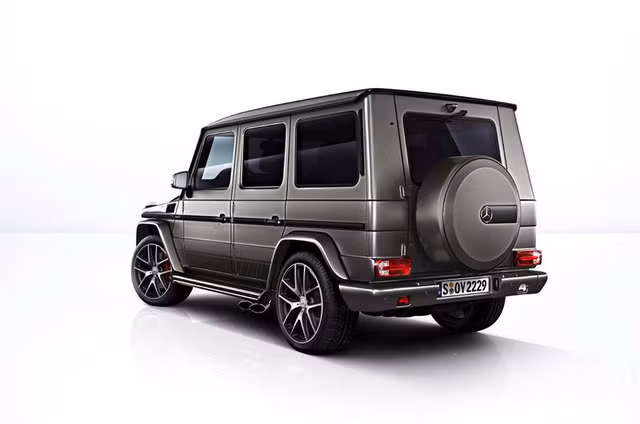 Điểm khác biệt về ngoại thất của G63 và G65 Exclusive Edition là lớp sơn màu xám độc đáo, tấm ốp gầm bằng thép không gỉ tích hợp vào cản trước, các sọc đua AMG chạy dọc mép dưới thân xe, các chi tiết bảo vệ được làm bằng nhôm tối màu và một bánh xe dự phòng đựng trong hộp sơn cùng màu thân xe.