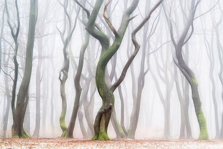Bức ảnh đẹp như tranh vẽ này được nhiếp ảnh gia Lars van de Goor chụp tại khu rừng Speulder ở Hà Lan. Những thân cây trong rừng nhìn như những vũ nữ đang nhảy múa trong sương sớm.