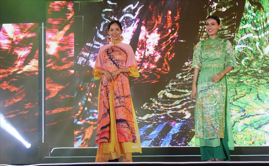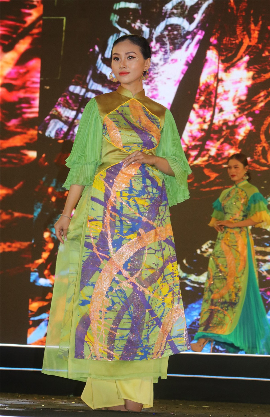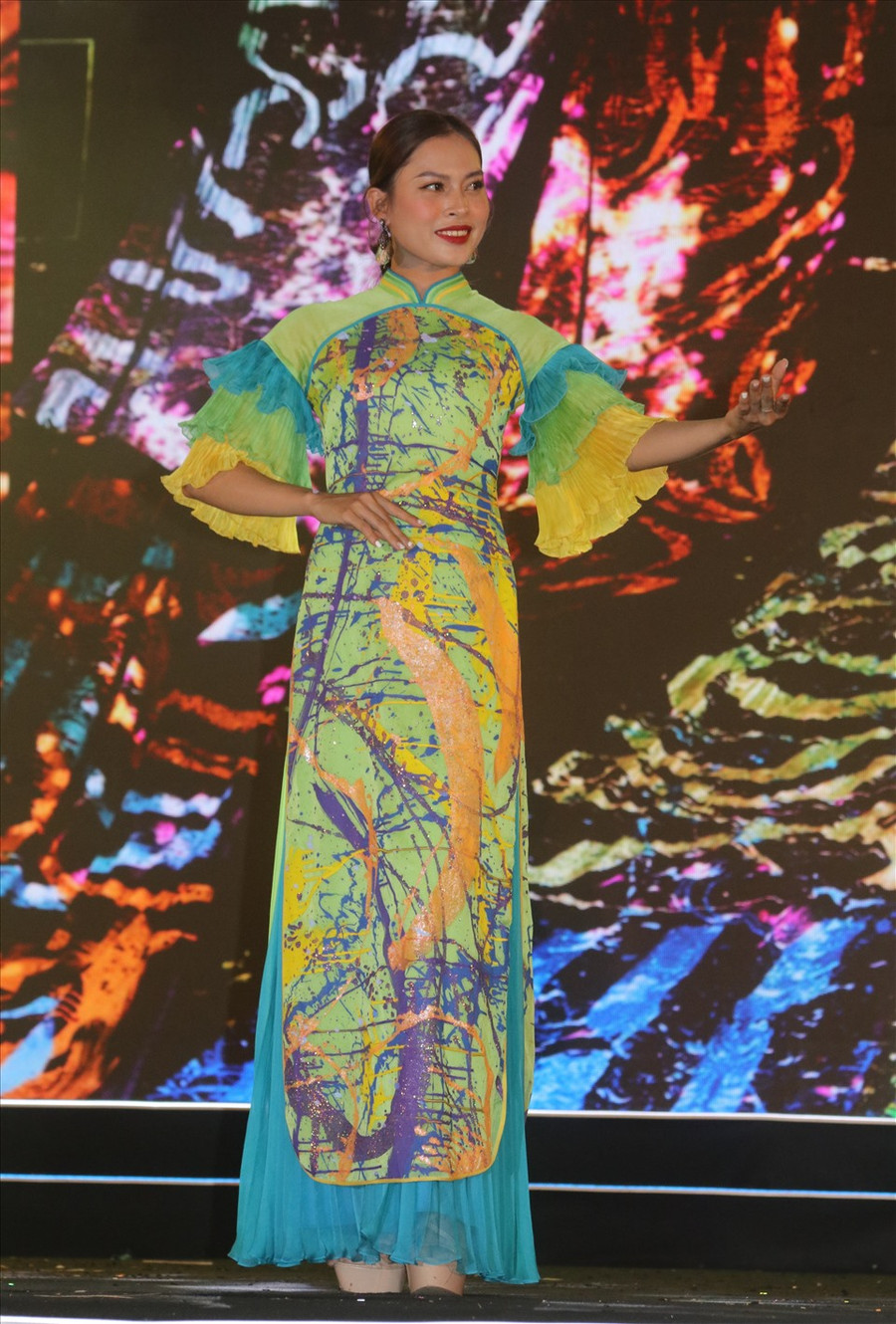 Từ kỹ thuật nhuộm vải thủ công 100%, qua bàn tay của người họa sĩ trên tơ lụa tạo nên chất liệu độc bản, để rồi mỗi đường nét áo dài được nhà thiết kế “vẽ” một cách thướt tha, tôn dáng hình người phụ nữ Việt Nam hiện đại mà vẫn giữ trọn chất Việt truyền thống.
