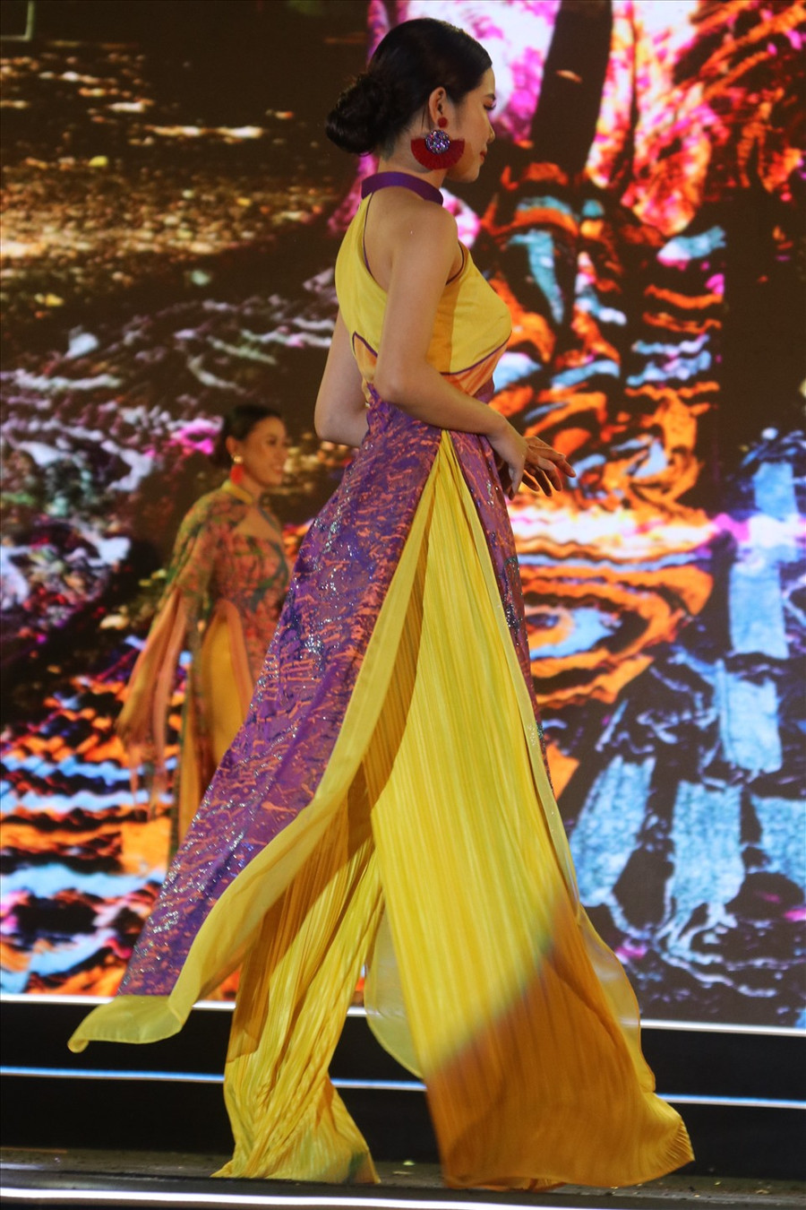 Đây là bộ sưu tập ghi dấu mối kỳ duyên giữa dáo dài và hội họa, với tính bay bổng của tơ và độ ngẫu hứng của màu trên nền lụa cùng bừng sáng tại đêm diễn.