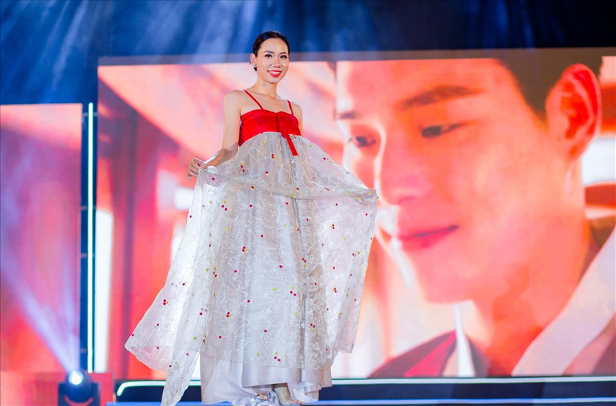 12 bộ hanbok được vận chuyển rất cầu kỳ, kỹ lưỡng từ Hàn Quốc sang Việt Nam với hơn 3.000km. Thiết kế thanh thoát dựa trên chất liệu voan lụa, tơ tằm của xứ sở kim chi, nhà thiết kế họ Park mang đến Nha Trang một cách nhìn mới lạ về hanbok.