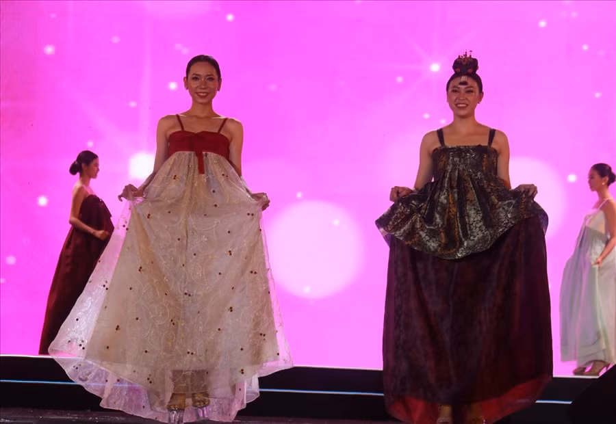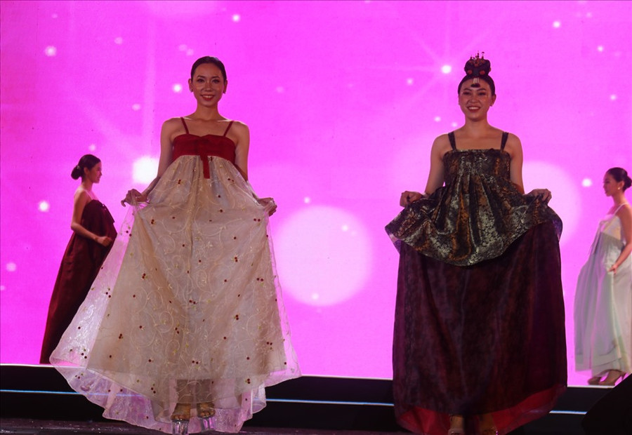 | Bộ sưu tập áo dài được chế tạo chất liệu thủ công của nhà thiết kế Kenny Thái khoe sắc tại “Passion Show Nha Trang 2022” . |