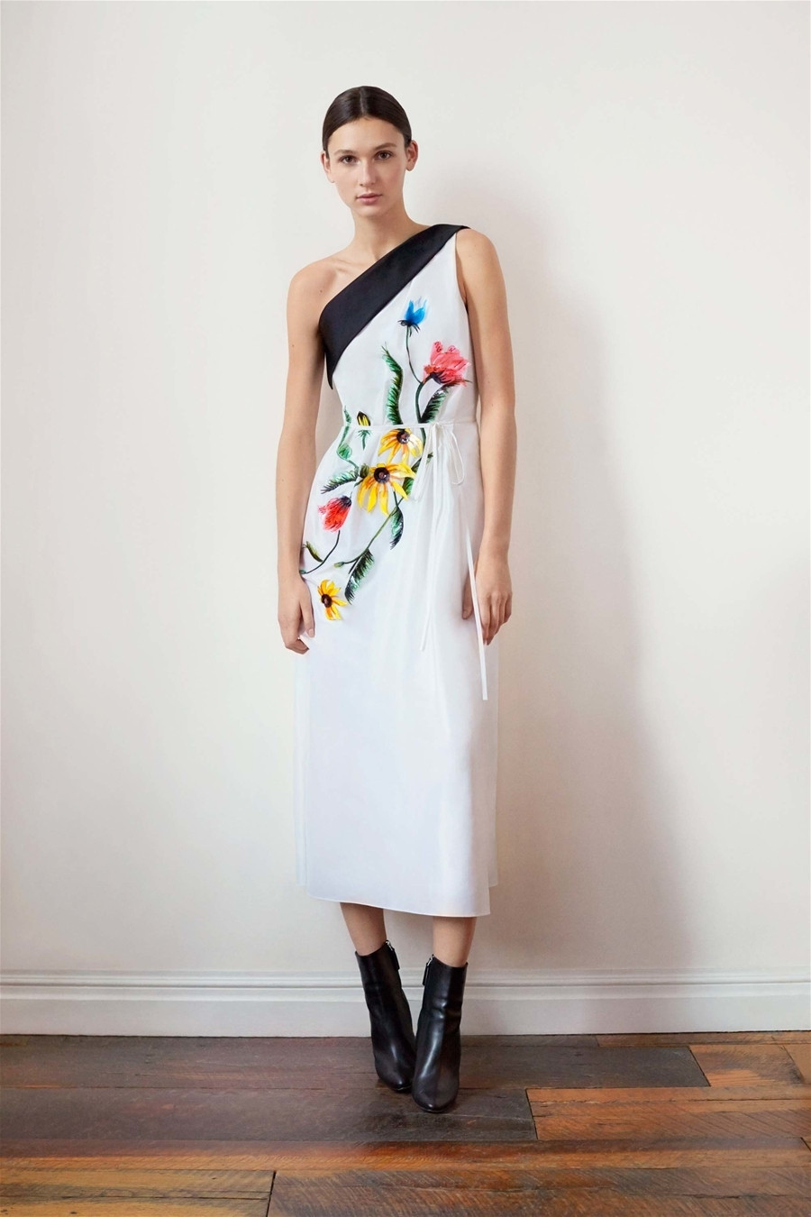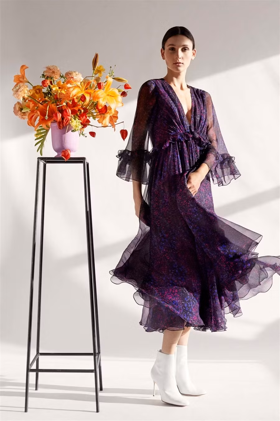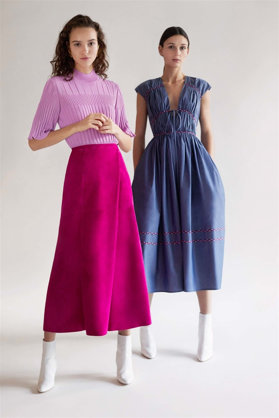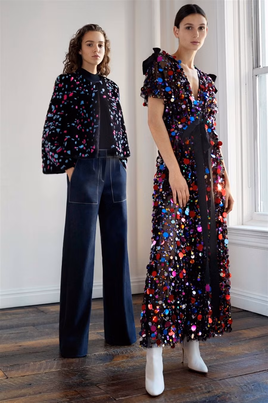 Carolina Herrera Pre Fall 2018 mang những màu sắc tươi tắn, bao gồm cả sắc tím Ultra Violet - gam màu của năm 2018 vừa được Viện Pantone công bố. Các họa tiết thêu hoa lá đầy sức sống, chân thực và tinh tế cũng khiếp bộ sưu tập này nhận được nhiều lời khen của giới mộ điệu.