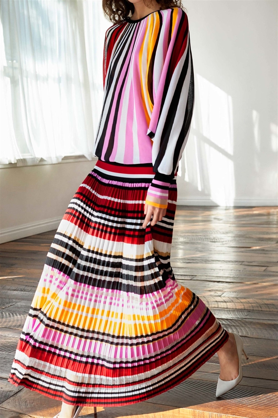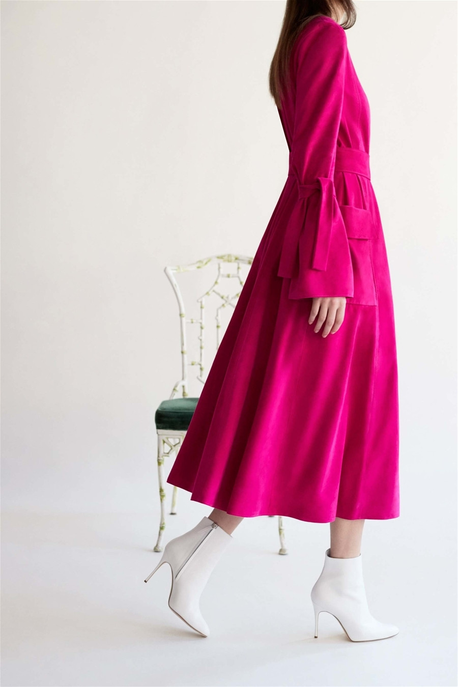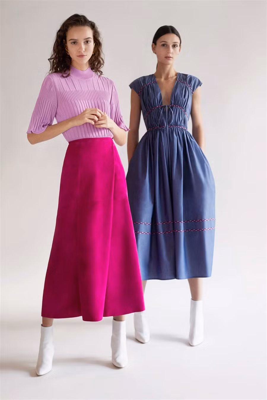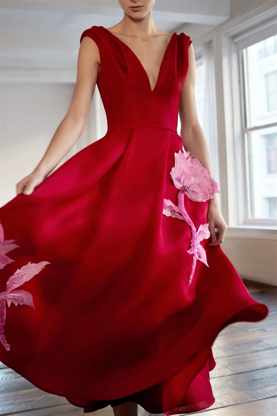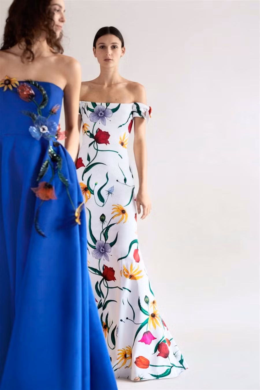 Carolina Herrera Pre Fall 2018 mang những màu sắc tươi tắn, bao gồm cả sắc tím Ultra Violet - gam màu của năm 2018 vừa được Viện Pantone công bố. Các họa tiết thêu hoa lá đầy sức sống, chân thực và tinh tế cũng khiếp bộ sưu tập này nhận được nhiều lời khen của giới mộ điệu.