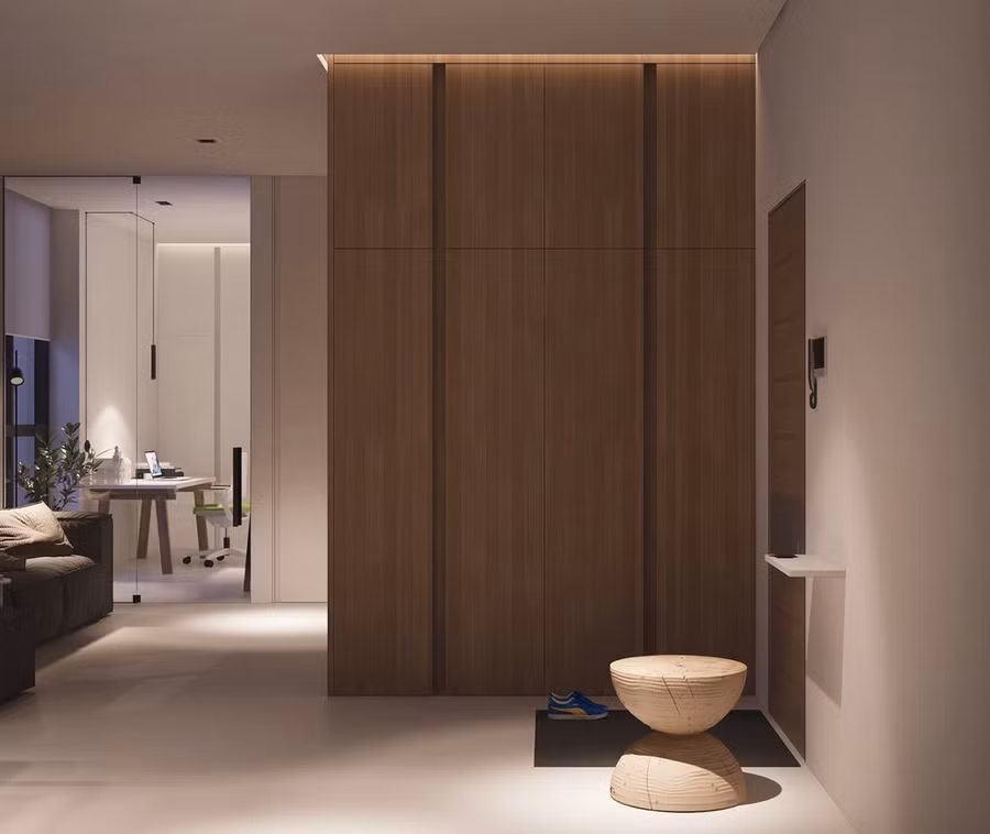 Từ góc này, chúng ta có thể nhận ra tài năng của nhà thiết kế thông qua việc sử dụng tài tình và hài hòa các yếu tố gỗ và màu trắng.