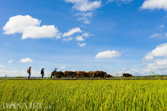 Màu vàng khác hoàn toàn so với bức tranh ruộng bậc thang ở Tây Bắc.
