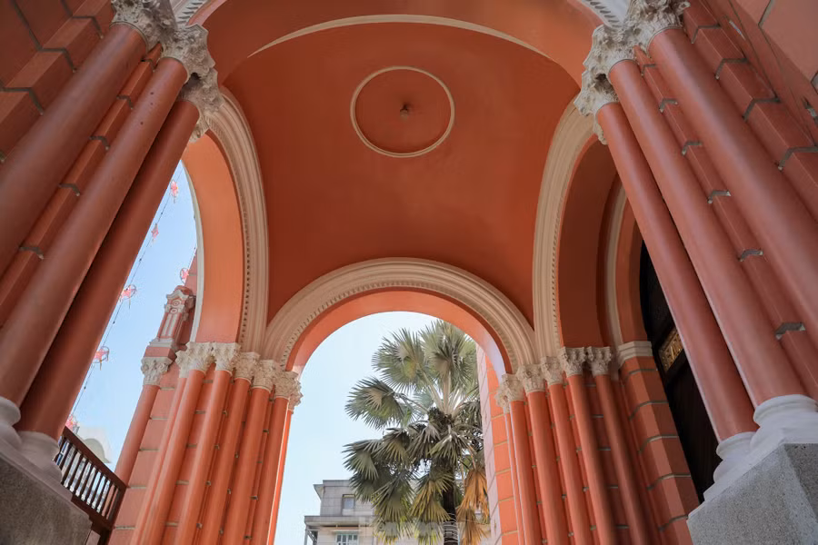 | Nhà thờ Tân Định được ví như một công trình cổ kính màu hồng biểu trưng cho tôn giáo, và ngọt ngào, xinh đẹp như một chiếc bánh kem. |
