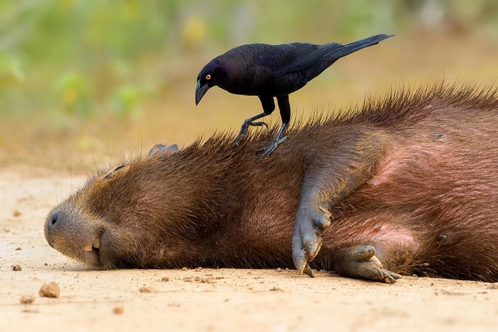 Chim chìa vôi rỉa mồi trên người một chú chuột lang ở Brazil.