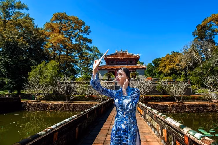 | Xứ Huế với những vẻ đẹp lay động lòng người hiện hữu trong BST áo dài của NTK Viết Bảo với tên gọi Non Nước Hương Bình. |