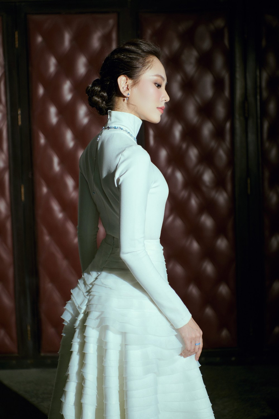 Bên cạnh đó, lối trang điểm sang trọng đã tôn lên các đường nét thanh tú của gương mặt Mai Phương, mang đến cho cô một vẻ ngoài thanh lịch mà không kém phần ấn tượng.