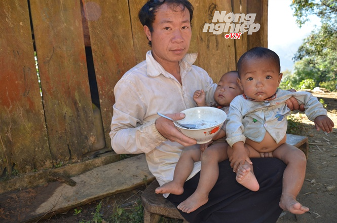 Anh Ư đang bế cặp sinh đôi mồ côi mẹ